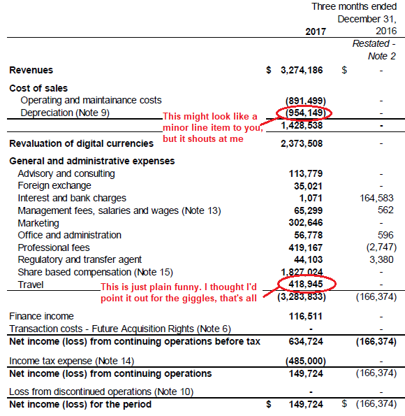 You can fight out the meaning of the borderline-passable gross margin, the stored coins and what have you all by yourself. I just want to point out two numbers on the P+L that stuck out at me: